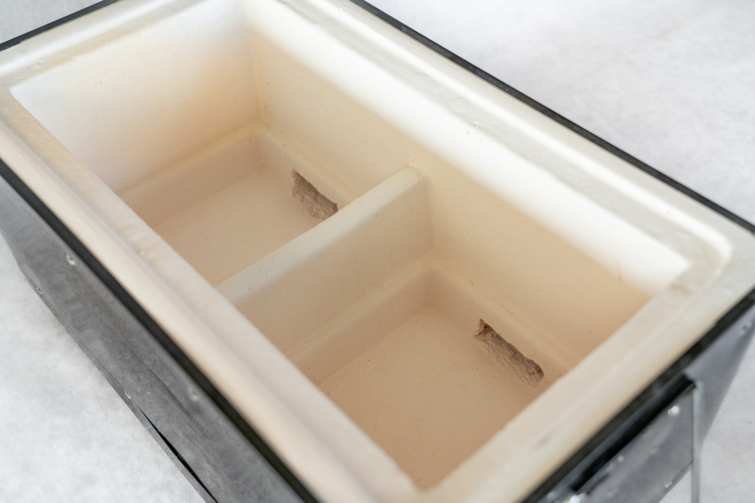 The Mikawa stove is a double-layered black shichirin, but today, shichirin production has evolved over time to focus more on ease of use and appearance. The easy-to-use rectangular shape, the variety of colors, and the iron plate wrapped around the outside make them easy to clean. Shichirin is called Konro in this area, but the performance and products are the same as Shichirin.