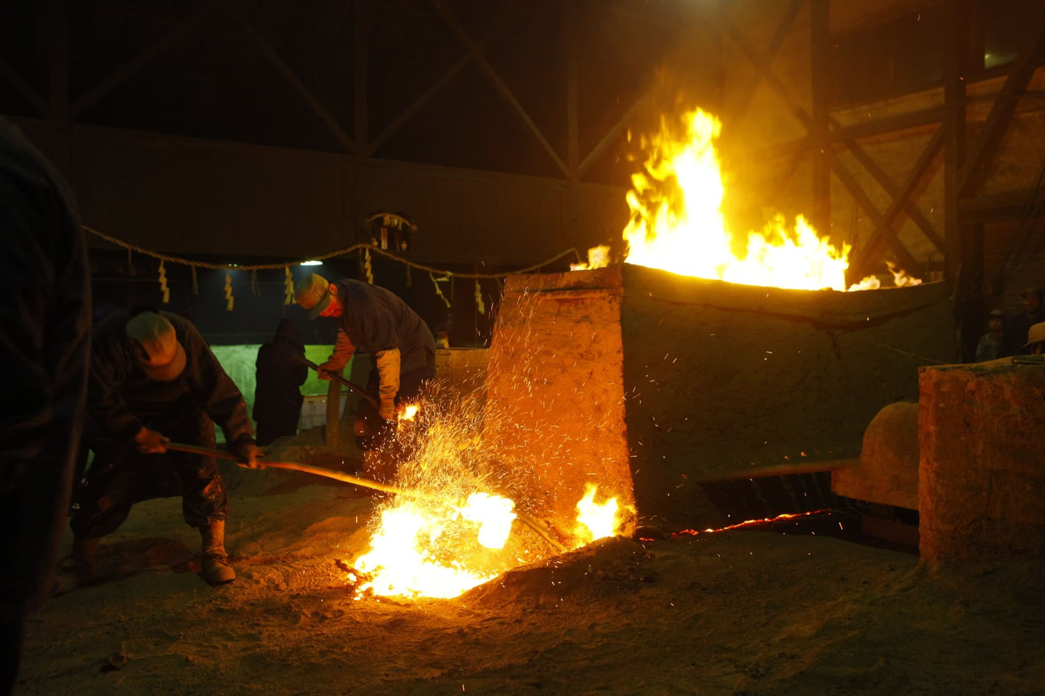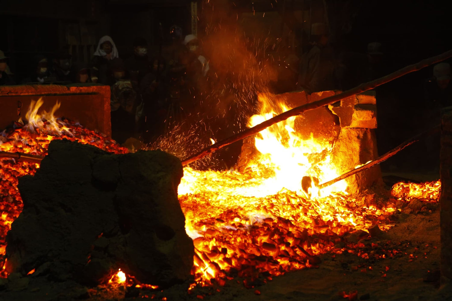 The craftsman at this Tatara work for three days and three nights straight, with temperatures up to 1400 F / 760 C. Such difficult and dangerous work is only done once per year.