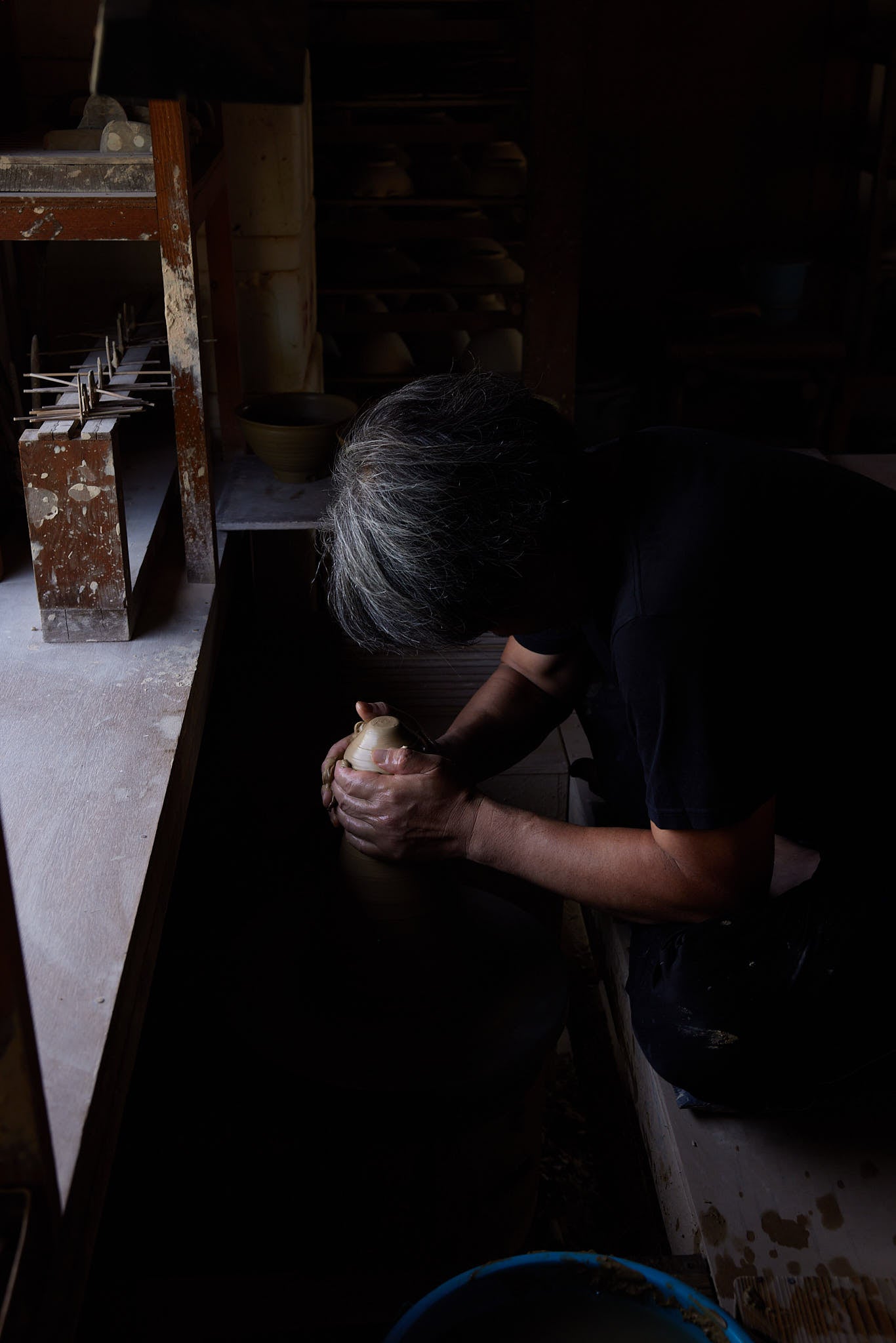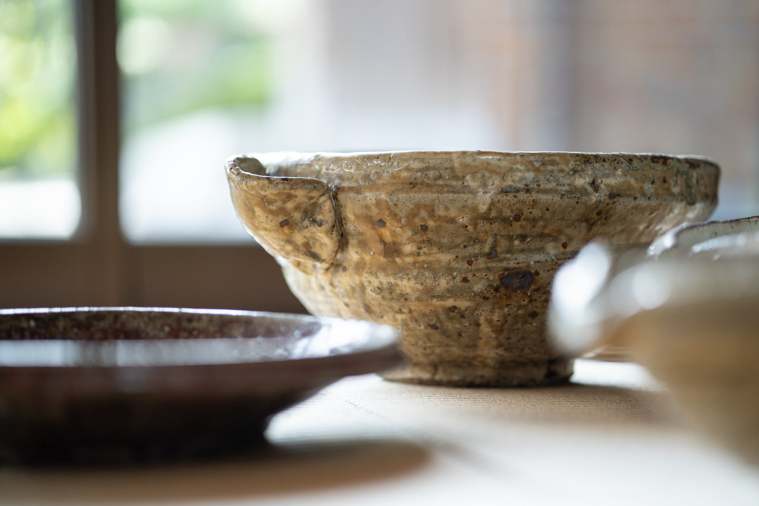 Shinichi Kotsuji has trained in Shigarakiyaki ceramics for over 10 years. After founding his company, Kotsuji moved to Shiga as well as Kyoto to find the best ceramic style to express himself in. Now he works in Igayaki, using the local rough sandy clay from Iga in Mie prefecture, he is able to take advantage of the high iron content in the clay to produce black spots across the ceramic surface.