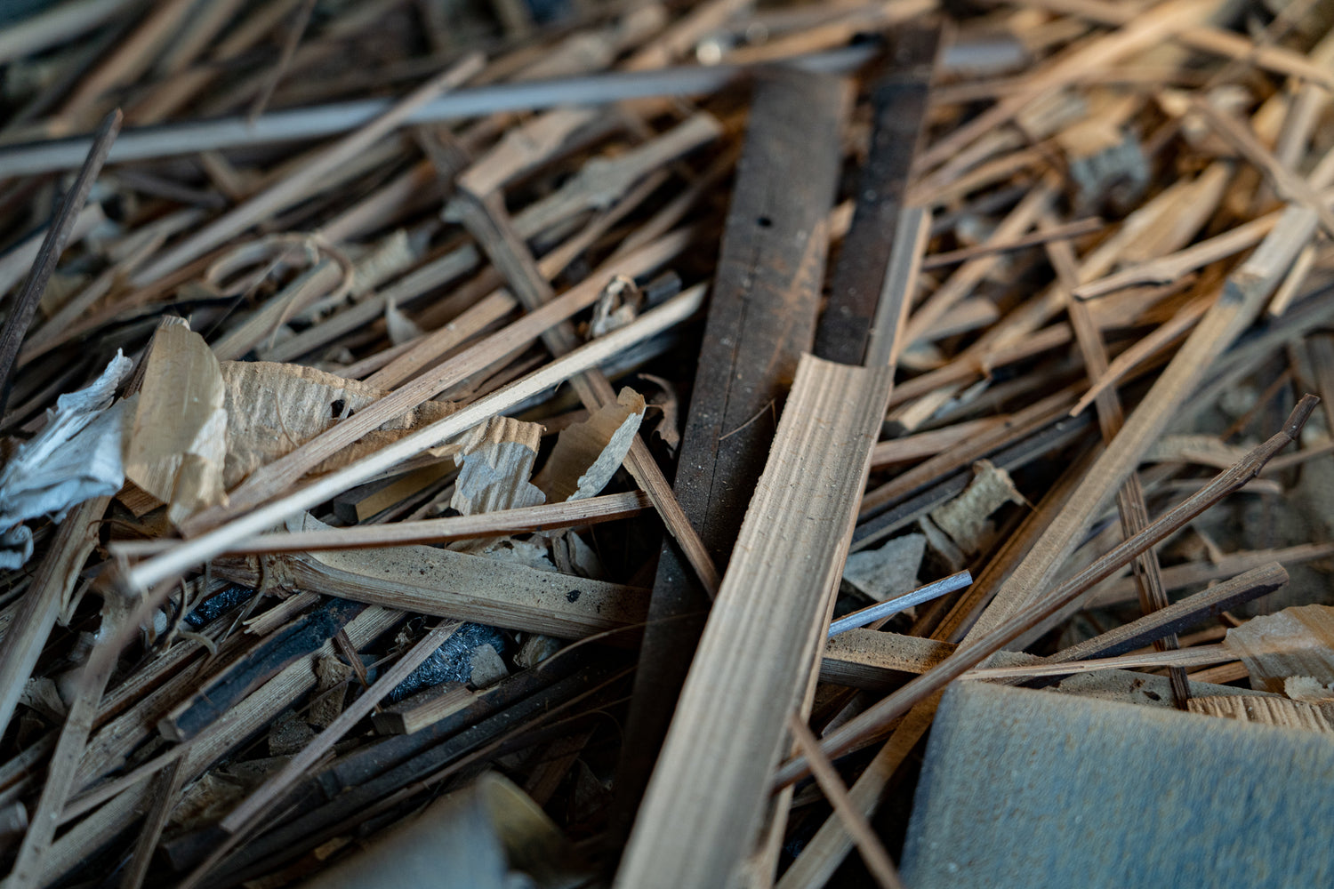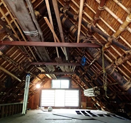 However, using natural Susudake is not all positive. Since it has been used as the framework for thatched roofs for decades to over a hundred years, it may have insect damage, and not all materials can be used. Wakatsuki explains that selecting the right material is difficult, as it may not be clear whether the bamboo can be used until it is split.