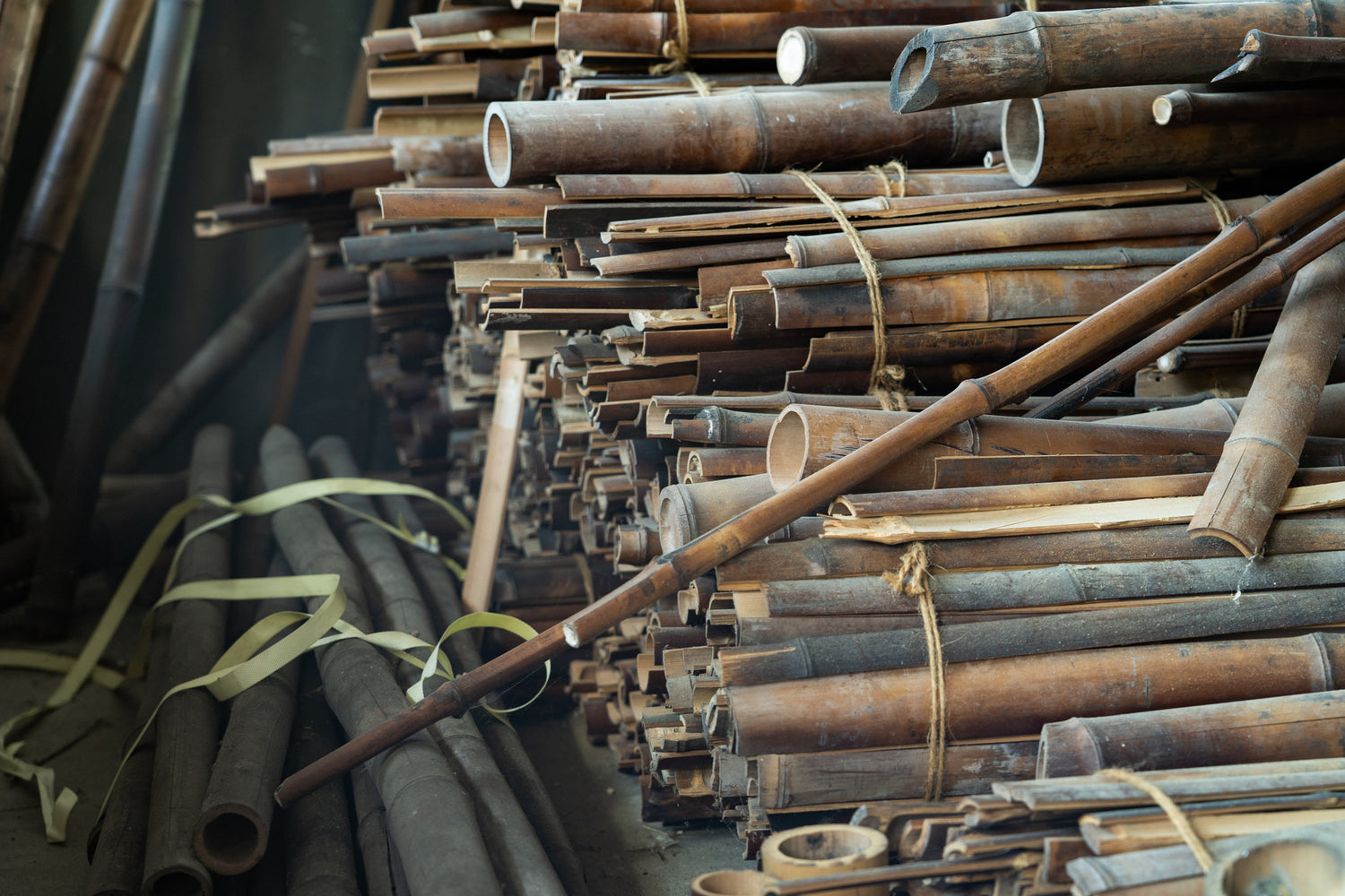 Since BC 3000 the sunken hearth of thatched roof houses were used in the living area to cook food and warm Japanese homes. The smoke from the hearth slowly turns the bamboo framework a dark brown as well as drying and stabilizing over few hundred years of use.The bamboo framework; Susudake products come from bamboo that is only taken when the house is torn down, it holds over a few hundred years of history from the families that lived in these houses.The Susudake products come from holding over few hundred years of history from the families that lived in these houses.By using the old bamboo from thatched roof houses which could end up as waste, Mr.Wakatsuki breathes new life into Susudake products instead of cutting fresh bamboo, helping to make a sustainable world, however thatched roof houses in japan are decreasing every year making the Susudake increasingly rare.