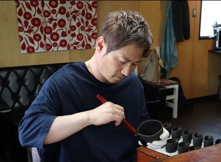 In Echizen where it is famous for mass producing lacquerware, Tomoaki Nakano takes a different approach to his work, he is more of a lacquerware “artist” making beautiful matte texture items. He was wondering to use non-natural base or wood grain for factory made mass producing, and then he started to own work for making more natural basic Echizen Shikki items.