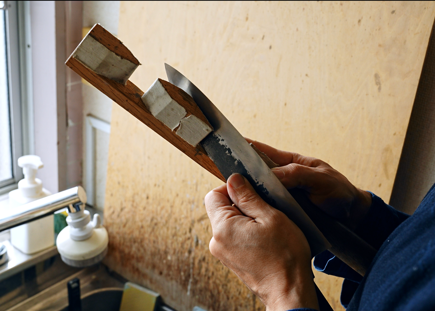 Now that you've prepared everything, let's start sharpening! Instead of focusing on a single point of the stone, use the entire surface to sharpen. This allows you to use the stone efficiently and prolong its lifespan.