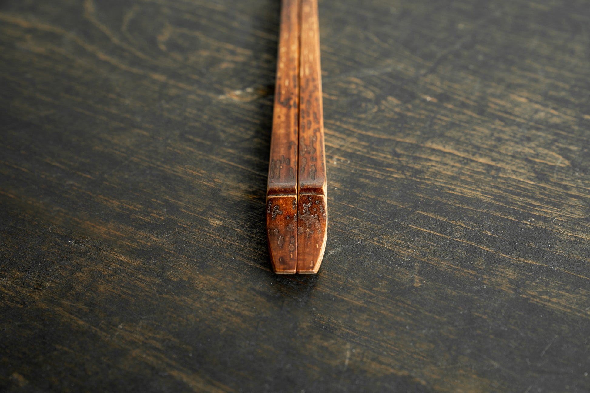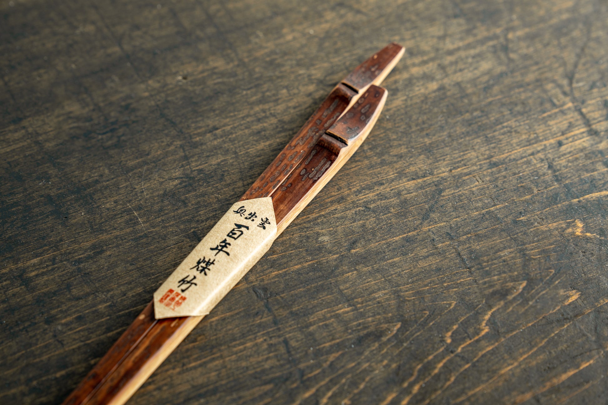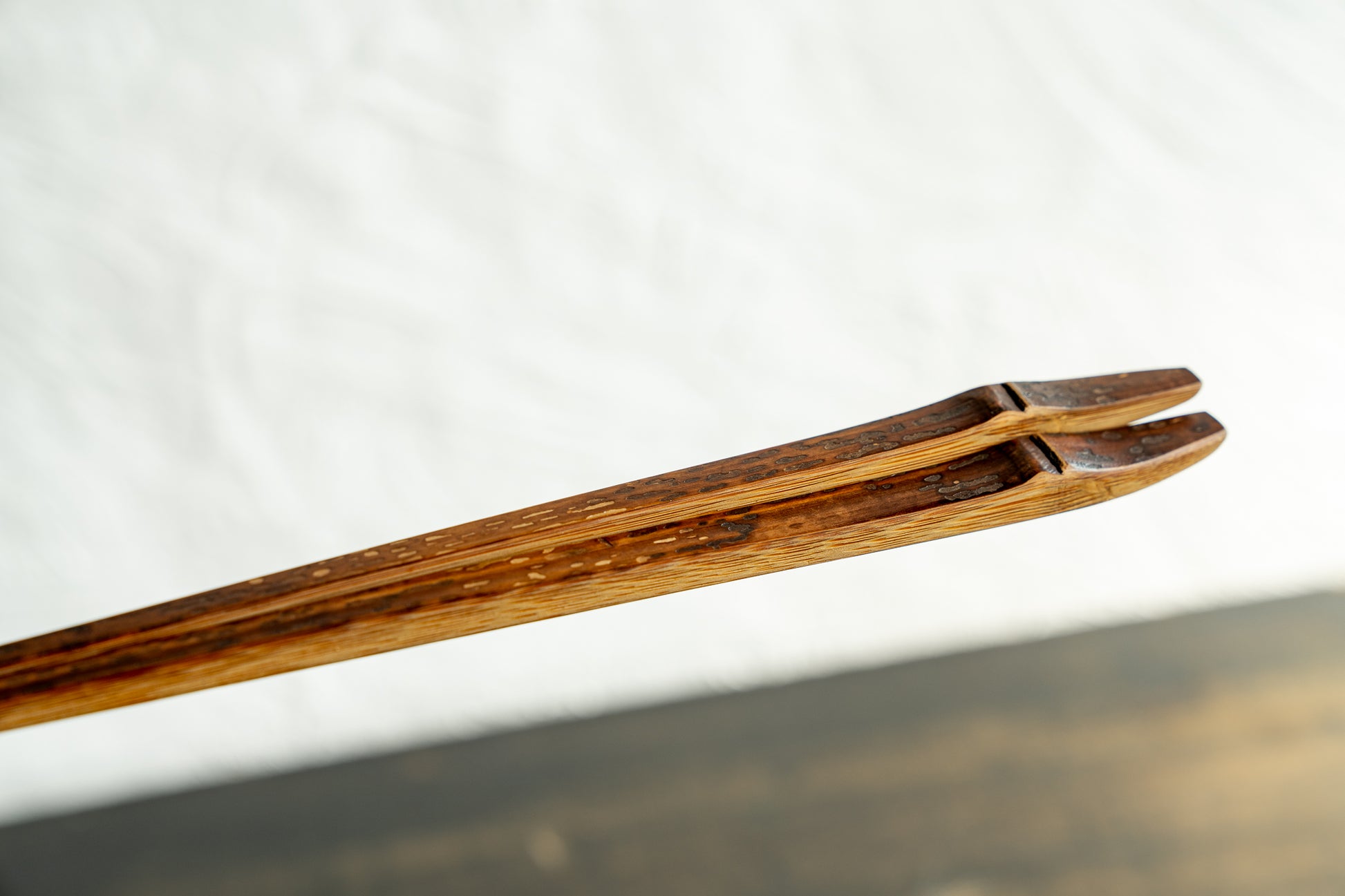 These chopsticks have a beautiful sheen with a dark brown surface that's slightly lighter around the edges.