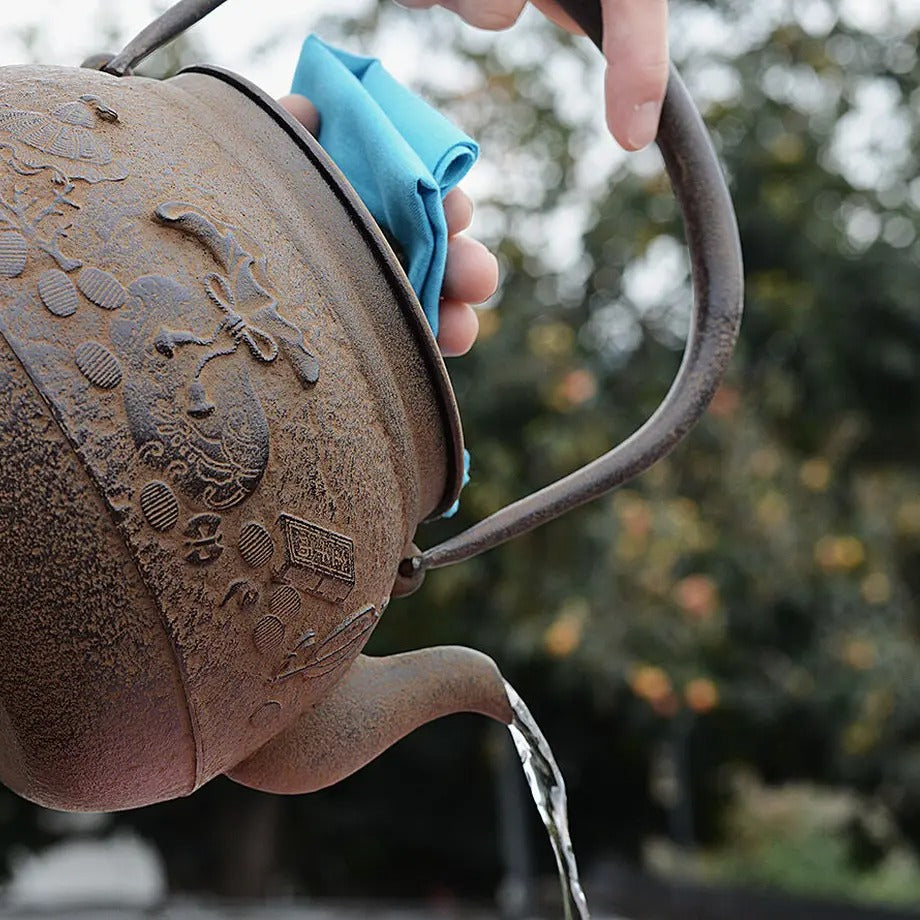 After each use, make sure to discard all the water inside the kettle to prevent any moisture from remaining. Remove the lid and heat the kettle over the flame for about 30 seconds, then let it sit for 10 minutes to thoroughly dry out any remaining moisture and prevent rusting. Once the surface has cooled down, you can then proceed to clean and store the kettle.