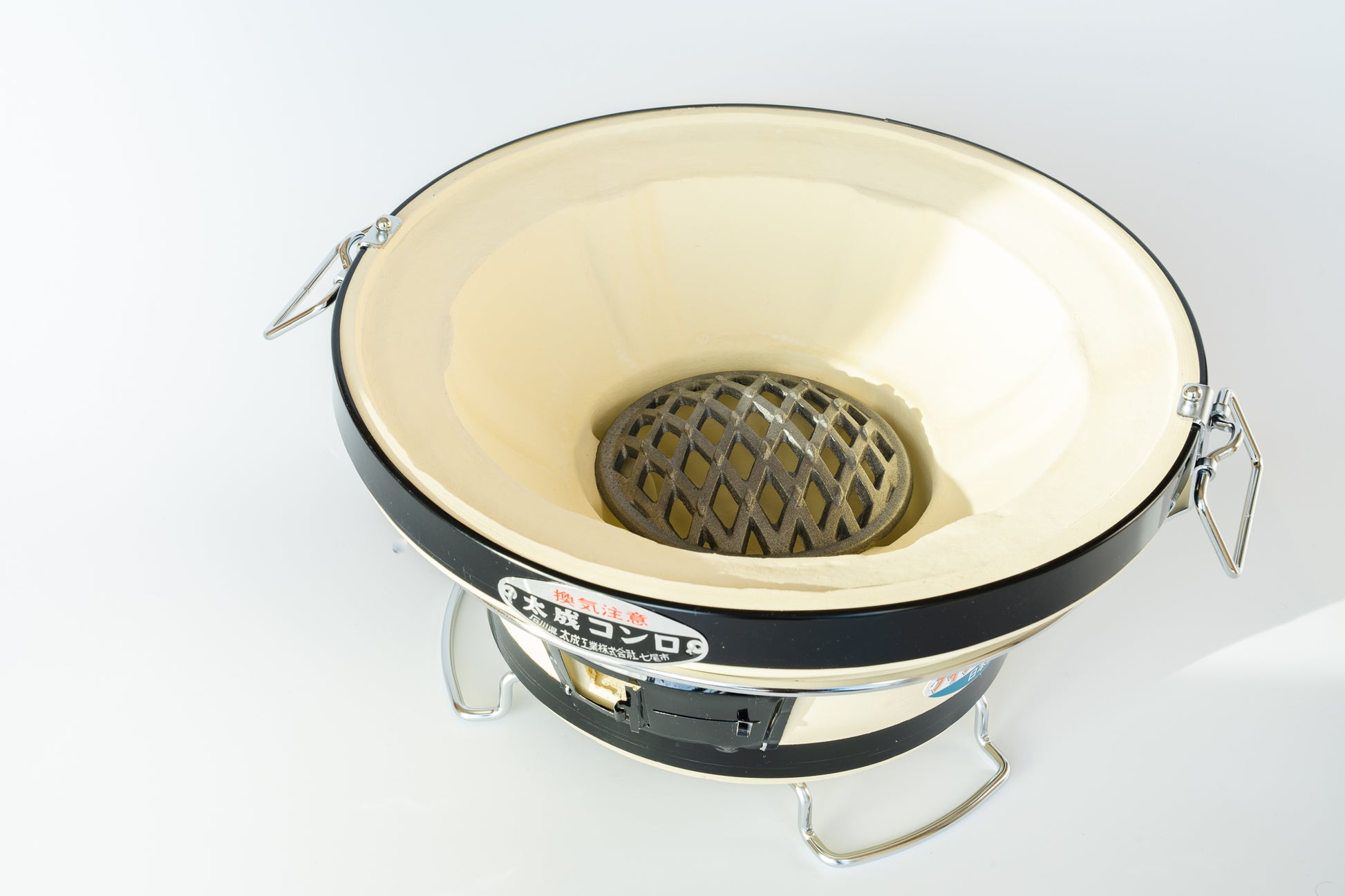 It is used for BBQ and for cooking yakitori, etc. The round shape is very efficient because it allows for even cooking wherever you grill, and the highly heat-resistant ceramic construction performs best when cooking with charcoal.