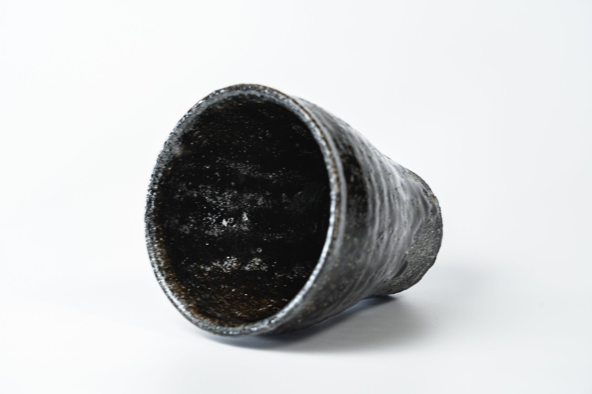 The Free Cup Large Kuro Haiyu is a stunning handmade ceramic from Seiji Okuda in Shigaraki, one of the three biggest ceramic centers in Japan. Each cup has a unique black ash glaze and a soft texture that is sure to please any connoisseur.