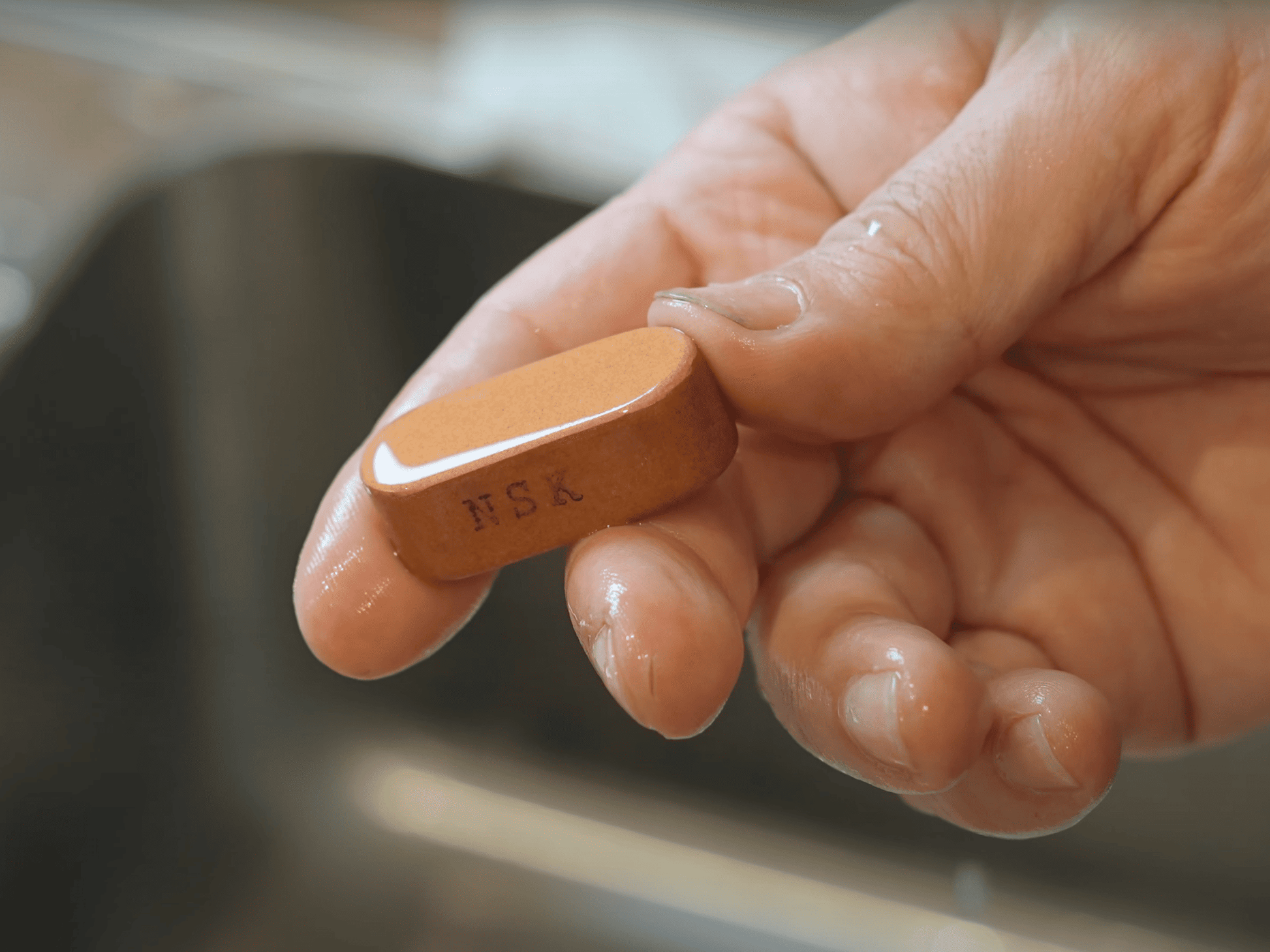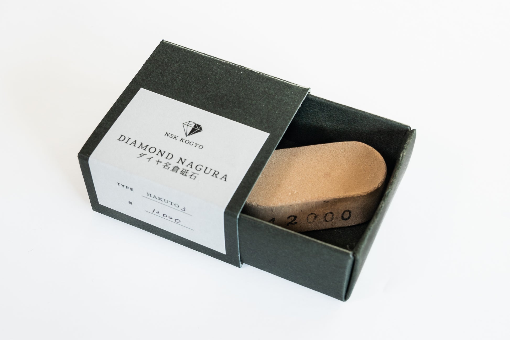 The new NSK KOGYO Nagura is a pure piece of diamond stone that helps produce the mud (Todoro) needed for sharpening.