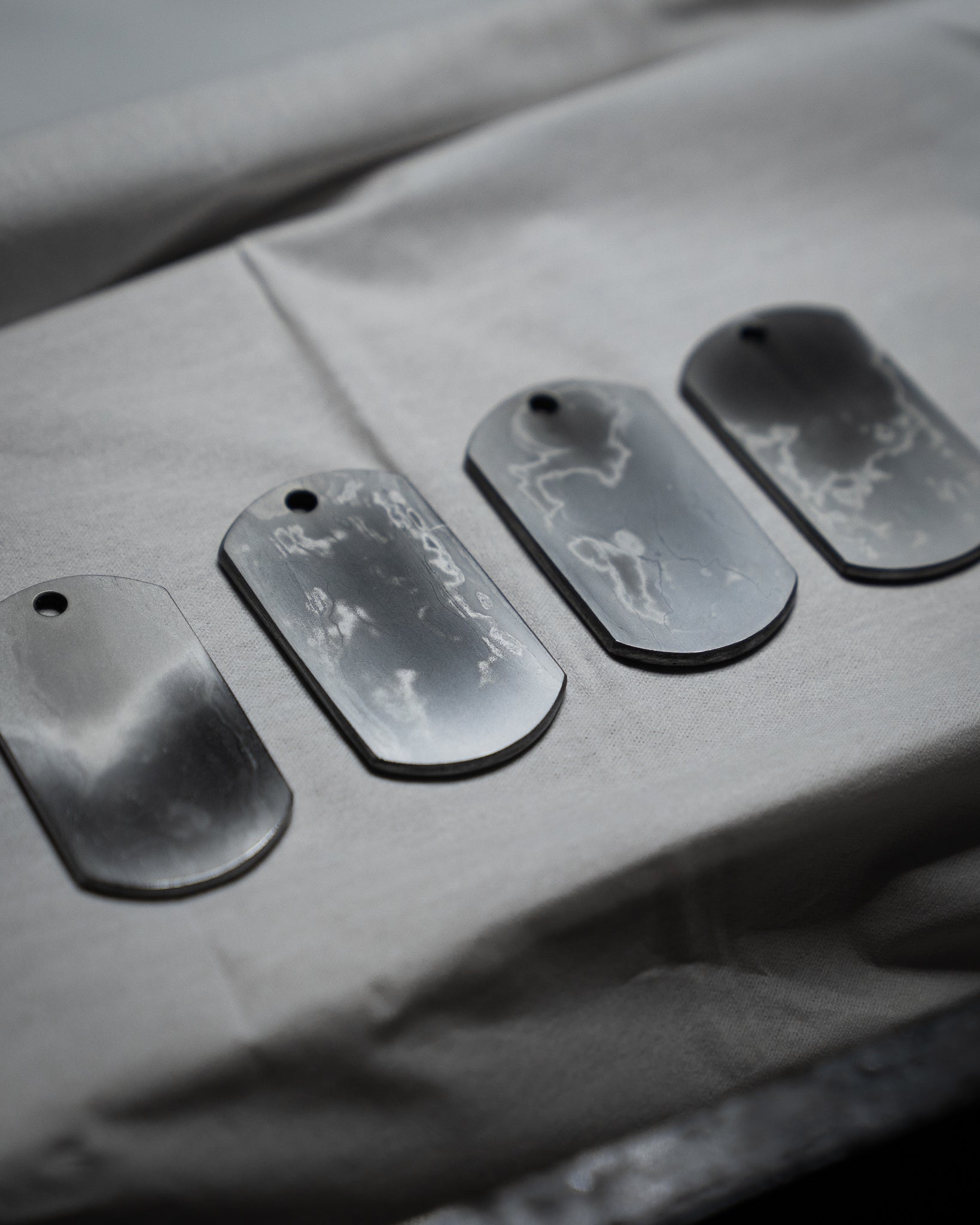 Designed and polished by Kyoto-based knife polisher Ivan Fonseca, each Dog Tag reflects his deep respect for Japanese sword craftsmanship. Using traditional polishing methods typically reserved for fine blades, he brings out the depth, clarity, and natural beauty of tamahagane. The minimalist form is intentional—allowing the material to speak for itself while expressing strength and refinement. More than an accessory, this piece is a wearable reflection of Ivan’s dedication to form, function, and the spirit of craftsmanship.