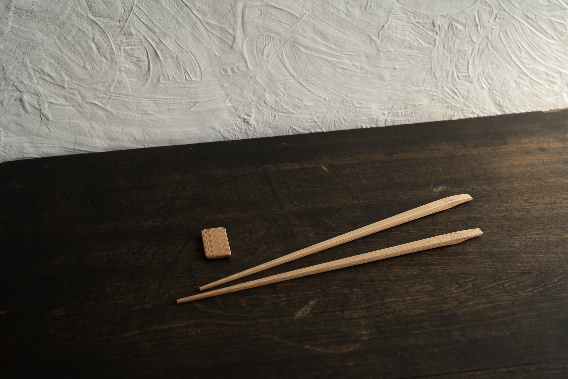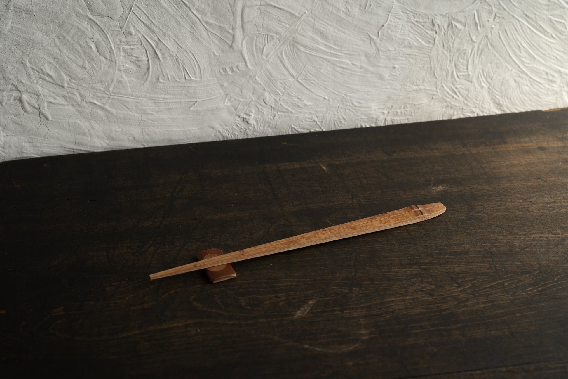 Craftsman Wakatsuki's attention to detail is evident in the roundly shaved tip of the chopsticks. Instead of opting for a uniform design, each shaved part, which matches the chopstick rest, serves as a unique accent that creates a harmonious balance.